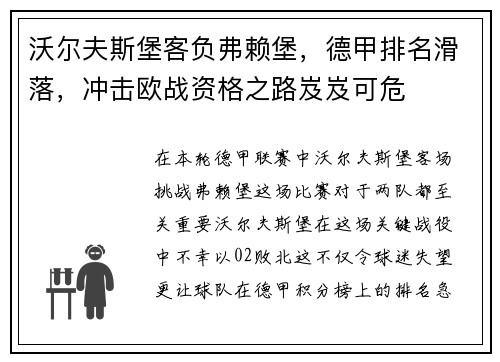 在本赛季初,云达不来梅的球迷们经历了一段充满不安与焦虑的日子。球队在积分榜上的排名一直徘徊在危险的降级区边缘,让人们不禁担心这支曾经叱咤德甲的劲旅是否会再度跌入德乙。随着时间的推进和一系列关键比赛的胜利,云达不来梅逐渐找回了自己的状态,尤其是在最近的一场主场比赛中,他们以3:1的比分力克劲敌,为自己的保级之路奠定了坚实的基础。 这场比赛不仅仅是一场胜利,更是球队整个赛季努力的缩影。从比赛开始的哨声...